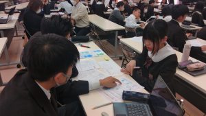 「落書きをした本人が一番悪い」という意見もあれば、「ペンを売っている大人が問題を助長している」「通報した人の意図は?」など、仲間の意見を聞くたびに新しい視点が生まれます。生徒たちは、自分の根拠を伝える難しさと、他者の考えを受け入れる大切さを肌で感じている様子でした,。