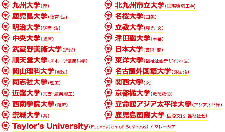 【鹿児島修学館高等学校】 令和6年度入試 大学等合格実績(卒業生27名・既卒含)
