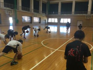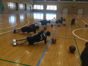 11月29日(土)、今春卒業した修学館高校の卒業生(バスケットボール部マネージャー)を講師に招き、体幹トレーニングを行いました。