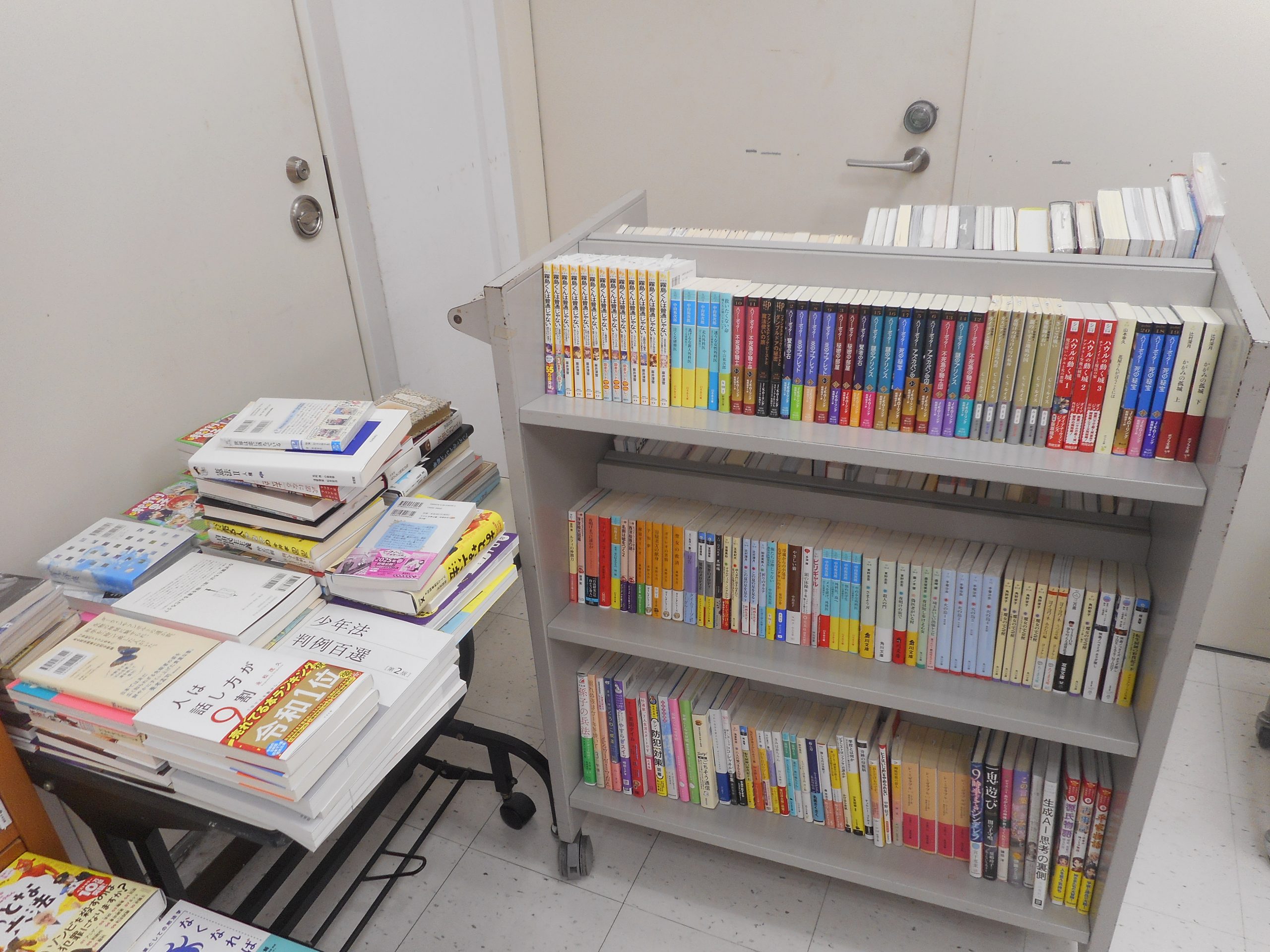 興味があるコーナーで立ち止まり、本を手に取り吟味します。