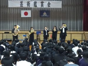 メンバーの松尾 光祐様(トロンボーン奏者)は本校の中高卒業生というご縁もあり、母校での素晴らしい演奏を披露してくださいました。